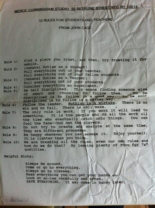 Jim Groom recently posted this great list of suggestions for students and teachers from John Cage. Jim says,