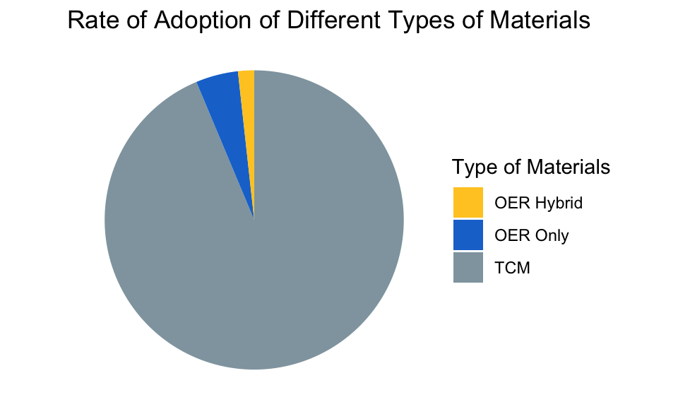 - The adoption rate of OER in these 20 courses for which good OER exist is 6.3%.
