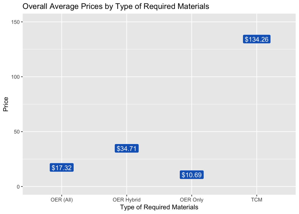 - The overall average price for “OER Hybrid” (Open Educational Resources in all formats, paired with a homework system, personalized learning platform, or other value-added service) is $34.71.