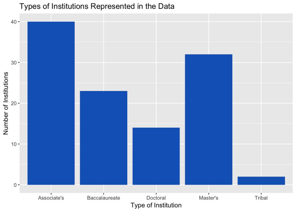 What types of institutions are represented in the data, and how many of each type are there?