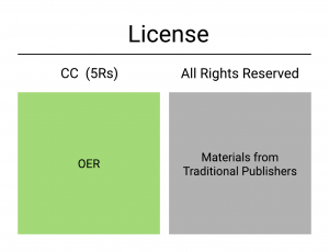 - Materials that were openly licensed and free were the OER we had spent the last decade advocating for. (green below)