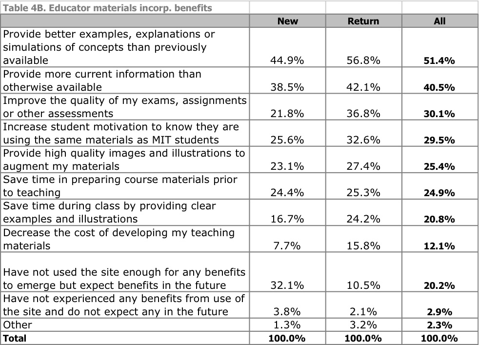 4. So, my question is, what is the return on this investment? What benefit are users deriving from open licensing that they could not derive if MIT published these materials online with a default copyright statement?